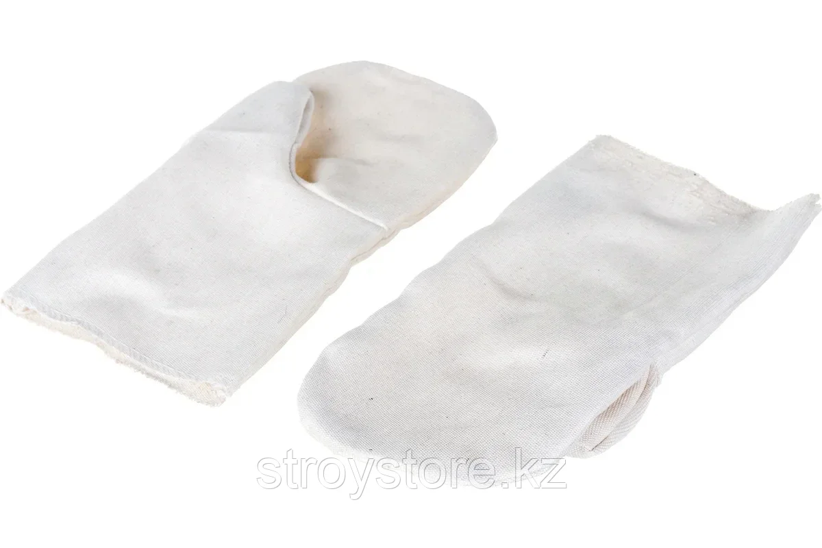 Благодаря таким рукавицам, руки защищены от возможных повреждений при каких-либо работах. Рукавицы выполнены из грубой хлопковой ткани двойного плетения, так называемой хлопчатобумажной двунитки.